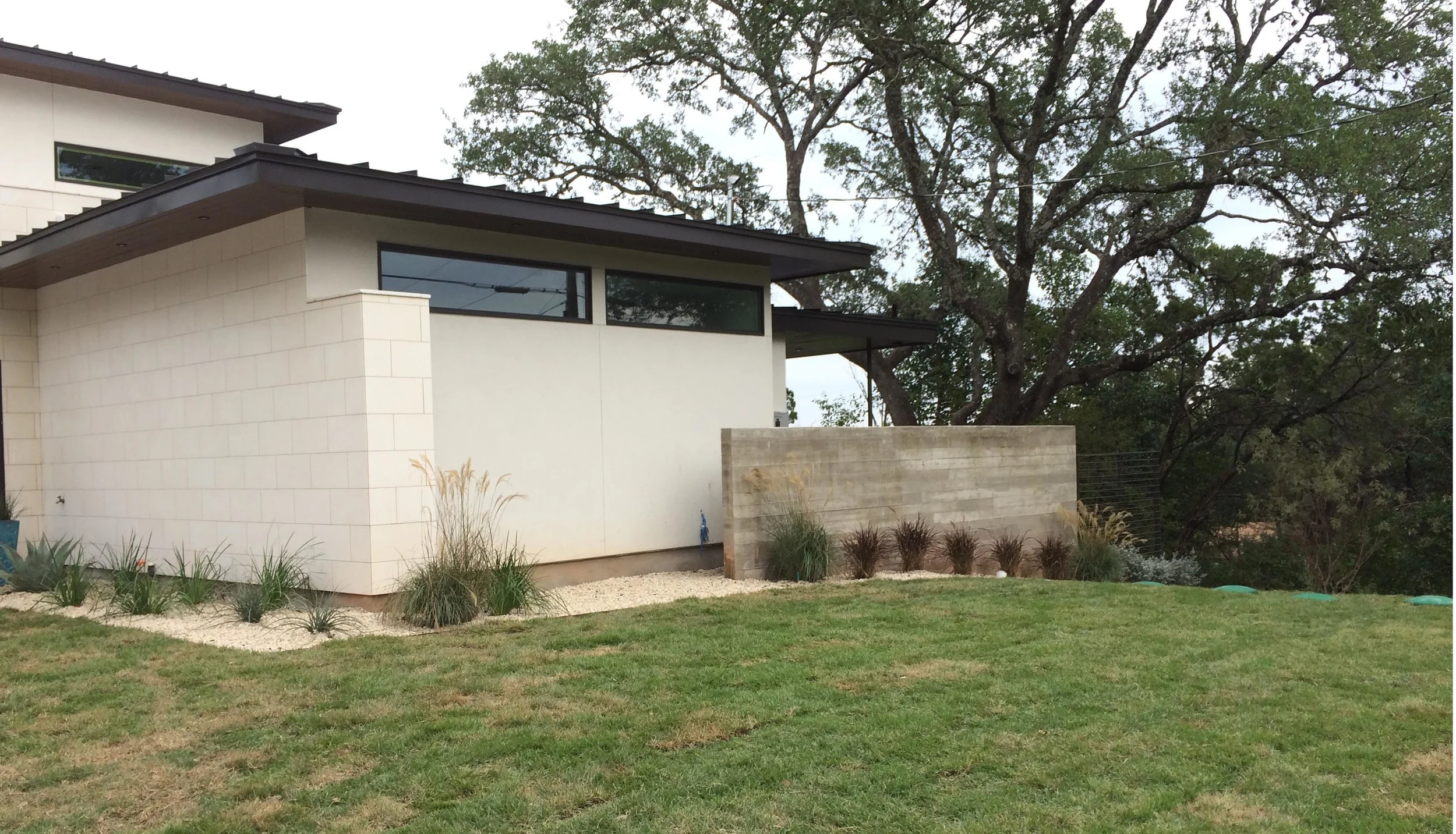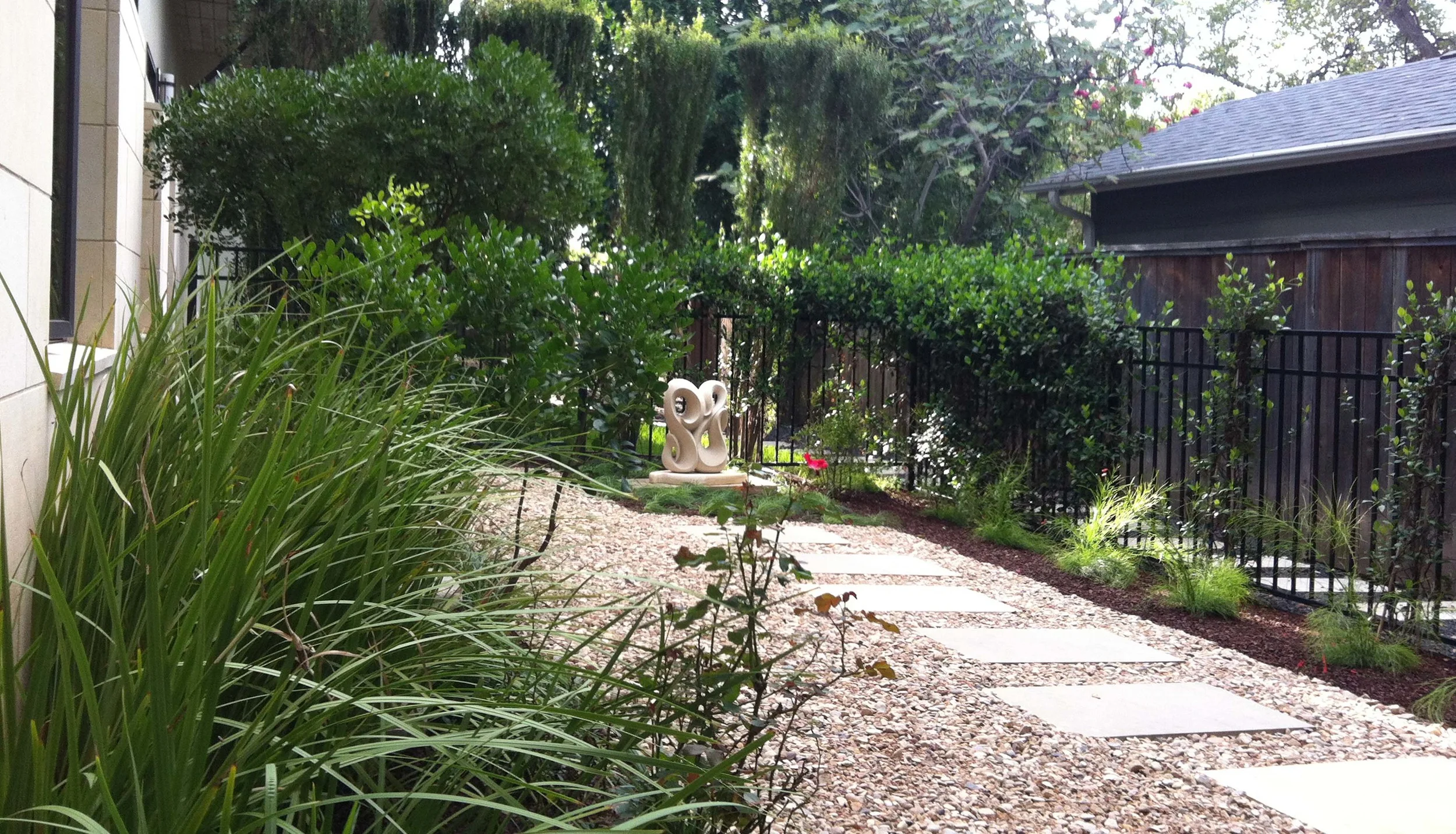 We helped the client site the two pieces of sculpture at their Clarksville dwelling and then transform the landscape to be a minimize water use and create a peaceful outdoor gallery environment.