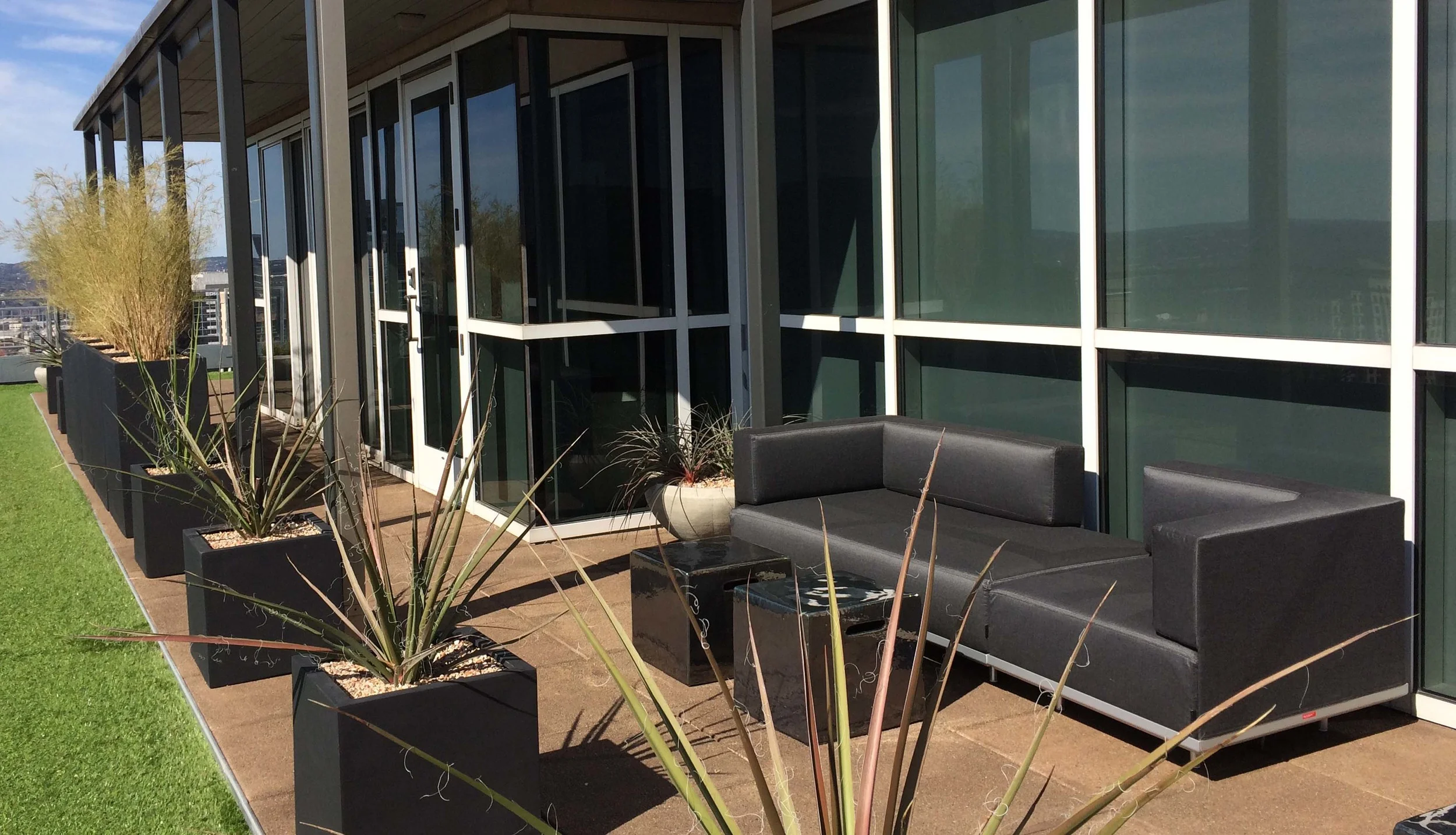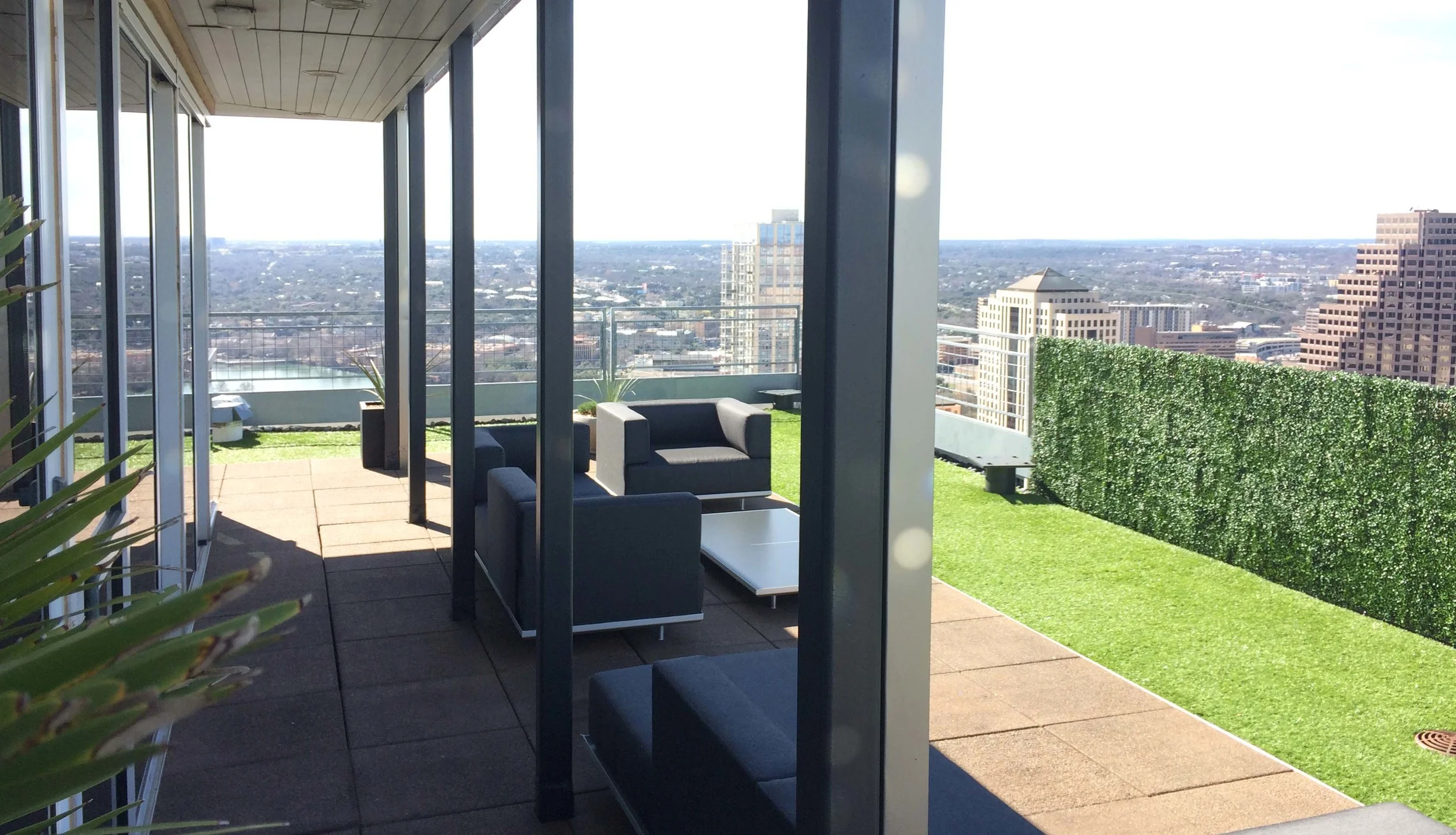 Things are quite different at 335' above downtown Austin. Today was sunny and calm but it can get windy and chilly quickly up here. We love this new furniture from Belgium that has anchored cushions to make sure nothing takes sail.